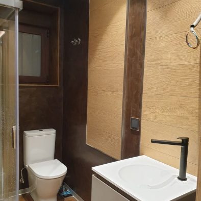 Ambientado en una de las actividades de la comarca, la apicultura. Combinación de estilos rústico y moderno.